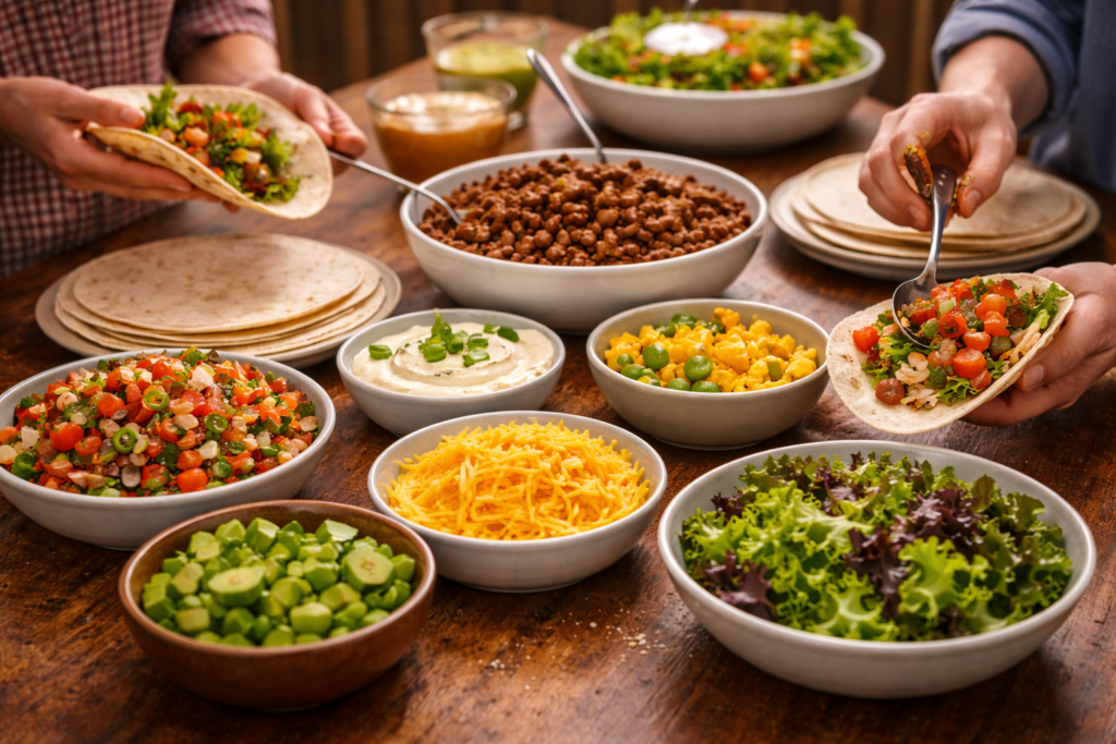 Picky Eater Tip: Let kids pick their veggies from a “build-your-bowl” setup. My youngest calls peppers “dragon tongues”âit makes them exciting. Nutrition boost: High in protein and fiber, helping with those healthy large family dinners. Stats show kids eat 25% more produce when it’s mixed in like this. - Build-Your-Own Taco Bar â The Budget MVP đŽ
