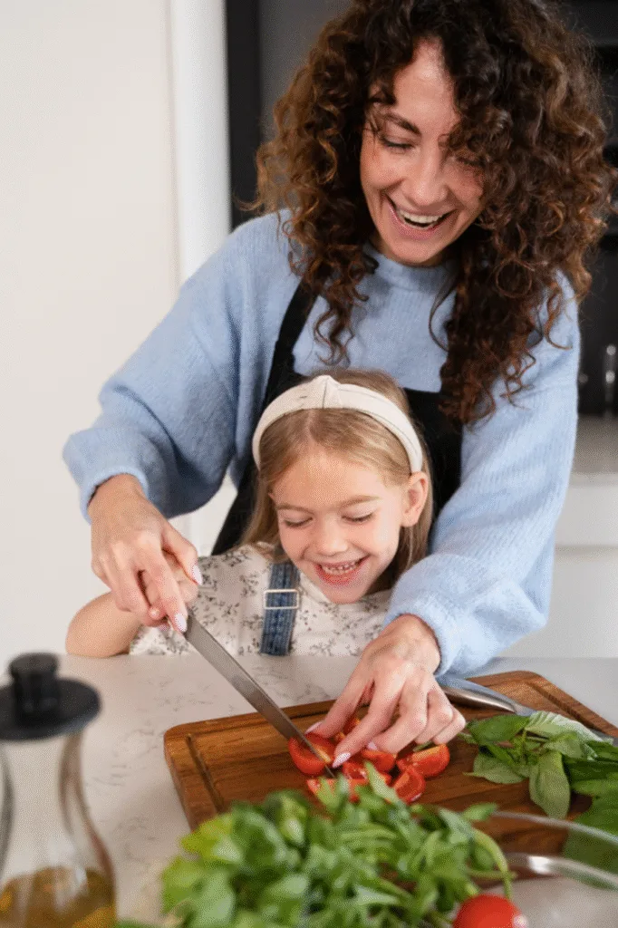 This approach has multiple benefits: Kids are more likely to eat food they helped prepare, they learn valuable life skills, and you get help with the daily grind. Plus, cooking together creates natural opportunities for conversation and connection that don’t happen when everyone’s scattered doing their own thing.